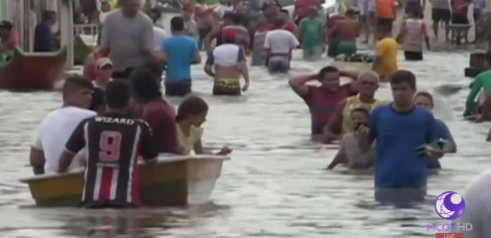 บราซิล 30 พ.ค. – มีผู้เสียชีวิตแล้วอย่างน้อย 4 ราย และอีกหลายพันคนต้องอพยพจากบ้านเรือน หลังฝนตกต่อเนื่องหลายวัน จนเกิดน้ำท่วมหนักและดินถล่ม ทางตะวันออกเฉียงเหนือของบราซิล ผู้คนต้องใช้เรือสัญจรไปมา โรงเรียนต่างๆ ถูกใช้เป็นที่พักพิงชั่วคราว ทางการประกาศภาวะฉุกเฉินใน 14 เมือง และส่งกำลังทหาร รวมทั้งเฮลิคอปเตอร์เข้าช่วยเหลือผู้ประสบภัย. – สำนักข่าวไทย