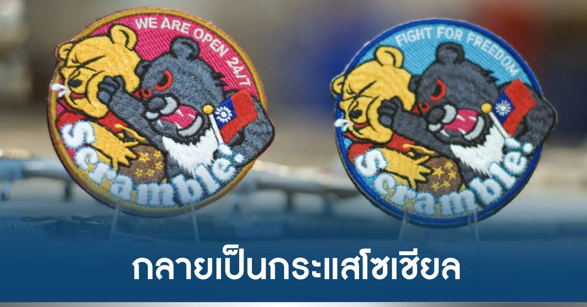 ก่อนหน้านี้เคยมีผู้ออกแบบอาร์มติดเสื้อรูปนักบินเครื่องบินขับไล่ของไต้หวันตบหัวแพนด้าที่เป็นสัญลักษณ์ของประเทศจีน หลังจากจีนจัดการฝึกซ้อมทางทหารครั้งใหญ่เพื่อแสดงความไม่พอใจที่นางแนนซี เปโลซี ประธานสภาผู้แทนราษฎรในขณะนั้นแวะเยือนไต้หวันเมื่อเดือนสิงหาคม 2565.-สำนักข่าวไทย