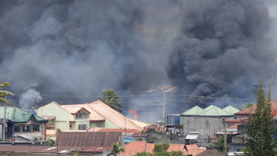 กลุ่มติดอาวุธบุกยึดเมืองมาราวีที่มีประชากร 200,000 คนตั้งแต่วันอังคารที่แล้ว และจับบางส่วนไว้เป็นตัวประกันเพื่อตอบโต้ที่ถูกกองทัพบุกจับแกนนำ ประธานาธิบดีโรดริโก ดูเตอร์เตประกาศกฎอัยการศึกทั่วเกาะมินดาเนาในวันนั้น ทางการท้องถิ่นเผยว่า ยังมีชาวบ้านติดอยู่ในพื้นที่ร่วม 2,000 คน ขณะที่คณะกรรมการกาชาดระหว่างประเทศเรียกร้องให้หยุดยิงเพื่อให้ชาวบ้านได้อพยพออกมา.- สำนักข่าวไทย