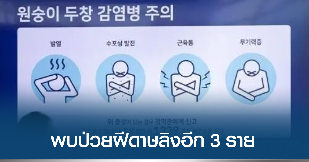 โซล 18 เม.ย.- เกาหลีใต้แจ้งยืนยันพบผู้ป่วยโรคฝีดาษวานรหรือฝีดาษลิงอีก 3 คน ทำให้ยอดผู้ป่วยทั้งประเทศรวมเป็น 16 คนแล้ว โดยสันนิษฐานว่าผู้ป่วยใหม่ 3 ราย อาจติดเชื้อในประเทศ