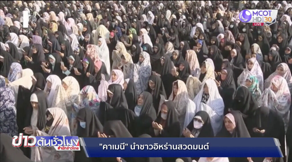 อิหร่าน 22 เม.ย.-อยาตอลเลาะห์ อาลี คาเมนี ผู้นำสูงสุดของอิหร่าน นำประชาชนประกอบพิธีสวดมนตร์ที่มัสยิดมูซัลลา ในกรุงเตหะราน เนื่องในโอกาสวันสิ้นสุดของเทศกาลถือศีลอด หรือรอมอดอน หลังจากว่างเว้นมานานถึง 3 ปี เนื่องจากการแพร่ระบาดของโควิด-19 โดยมีประชาชนมาร่วมพิธีเป็นจำนวนมาก