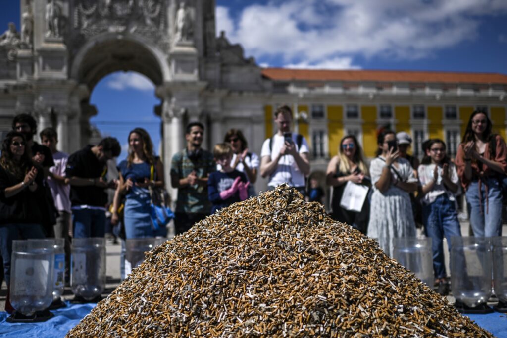 ลิสบอน 24 เม.ย. – นักเคลี่อนไหวด้านสภาพภูมิอากาศช่วยกันรวบรวมก้นบุหรี่ 650,000 ชิ้นและกองรวมกันที่บริเวณใจกลางกรุงลิสบอน ของโปรตุเกสในวันอาทิตย์เพื่อปลุกจิตสำนึกเกี่ยวกับมลพิษที่มักจะถูกมองข้ามไป