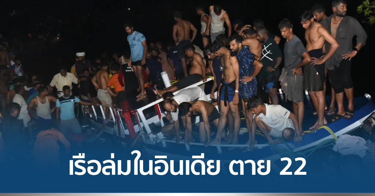 มาเลปปูรัม 8 พ.ค. – เจ้าหน้าที่อินเดียกล่าวว่า เรือโดยสารท่องเที่ยวแบบ 2 ชั้นเกิดจมลงในรัฐเกรละ (Kerala) ทางใต้ของอินเดียทำให้มีผู้เสียชีวิตแล้วอย่างน้อย 22 ราย