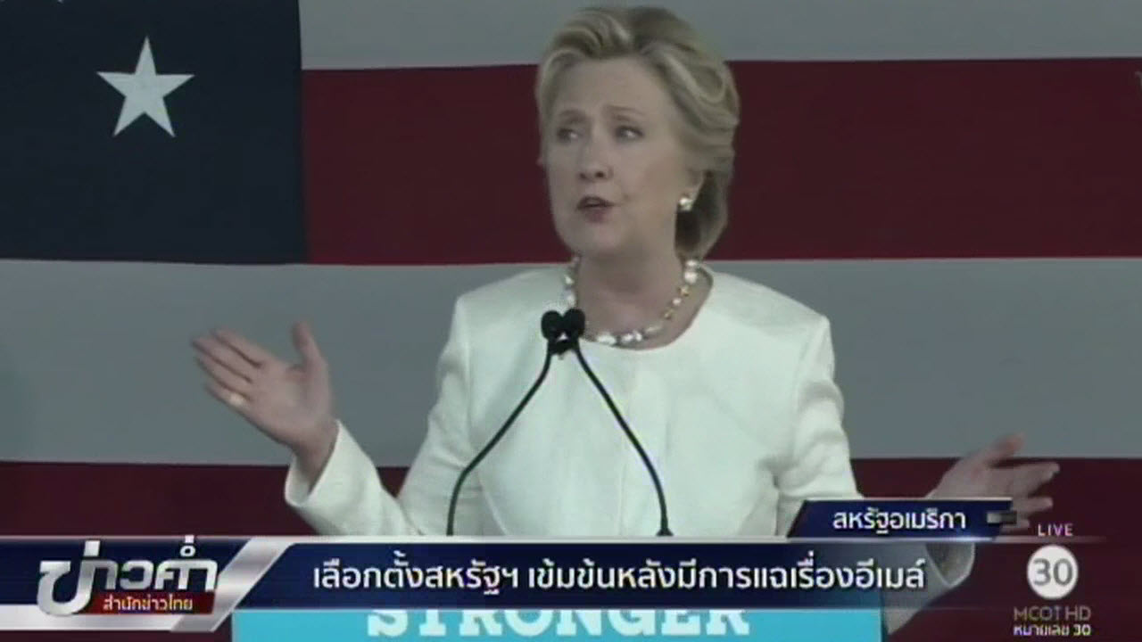 สหรัฐ 2 พ.ย.-ศึกเลือกตั้งประธานาธิบดีสหรัฐ เริ่มคาดเดาทิศทางยากมากขึ้น หลังนางฮิลลารี คลินตัน จากพรรคเดโมแครตเริ่มเสียศูนย์คะแนนนิยมหล่นวูบ หลัง FBI ประกาศรื้อคดีอีเมลฉาวของเธออีกรอบ ขณะที่นายโดนัลด์ ทรัมป คู่แข่งเรียกร้องให้ผู้ที่ออกเสียงเลือกตั้งล่วงหน้าไปแล้ว ยกเลิกการลงคะแนนและหันมาสนับสนุนเขา