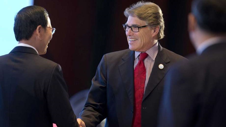 นายเพร์รีได้พบกับนายจาง เกาลี่ รองนายกรัฐมนตรีจีนวันนี้ นอกรอบการประชุมว่าด้วยพลังงานสะอาดที่กรุงปักกิ่งโดยมีการหารือถึงก๊าซธรรมชาติแอลเอ็นจี พลังงานนิวเคลียร์ และการจัดเก็บคาร์บอนที่ทั้งสองฝ่ายสามารถร่วมมือกัน ก่อนหน้านี้รัฐมนตรีพลังงานสหรัฐกล่าวเมื่อวันจันทร์หวังว่า จีนจะก้าวขึ้นเป็นผู้นำที่แท้จริงในการจัดการกับสภาพอากาศโลก และปฏิเสธจะวิจารณ์เสียงตำหนิที่สหรัฐถอนตัวจากข้อตกลงโลกร้อน .- สำนักข่าวไทย