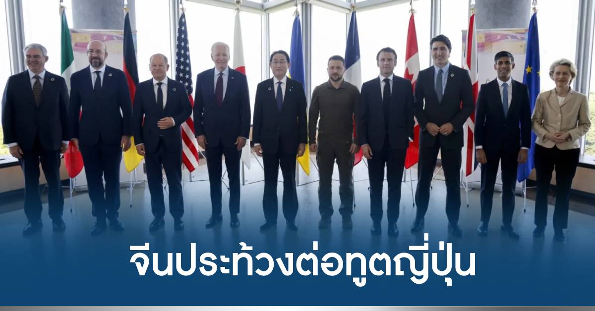 ปักกิ่ง 22 พ.ค.- จีนเรียกเอกอัครราชทูตญี่ปุ่นประจำจีนเข้าพบเพื่อยื่นประท้วงอย่างเป็นทางการในเรื่องที่แถลงการณ์ของที่ประชุมสุดยอดจี 7 (G7) ที่เมืองฮิโรชิมะของญี่ปุ่นมีเนื้อหาหลายประเด็นเกี่ยวข้องกับจีน ขณะที่เอกอัครราชทูตญี่ปุ่นชี้แจงตอบโต้