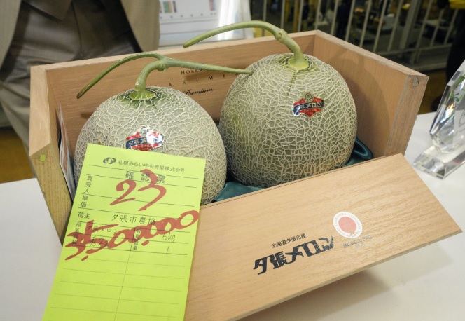 ผลไม้เกรดพรีเมียมมักจะมีการประมูลไปในราคาที่สูงลิ่วในการประมูลครั้งแรกในญี่ปุ่น ซึ่งผู้ซื้อมักจะใช้ความสำเร็จในการประมูลเพื่อจุดประสงค์ในการโฆษณา บริษะทโฮคูยูแพค จะนำเมลอนที่ประมูลได้ไปตัดเป็นชิ้นเพื่อแจกในตลาดเกษตรกรในท้องถิ่นในวันที่ 3 และ 4 มิถุนายน.-สำนักข่าวไทย