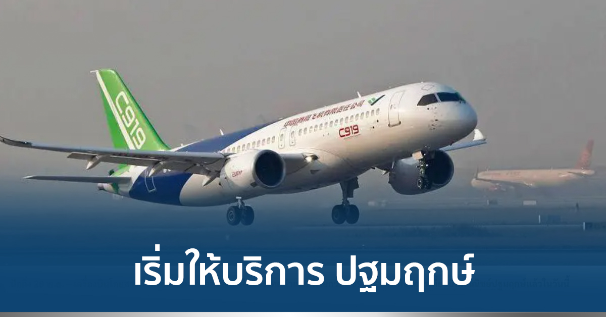 ปักกิ่ง 28 พ.ค. – เครื่องบินโดยสารที่จีนพัฒนาและต่อสร้างเองในประเทศลำแรกที่เรียกว่า “ซี919” เริ่มให้บริการเที่ยวบินพาณิชย์ปฐมฤกษ์แล้วในวันนี้