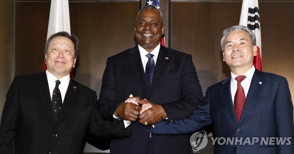 นายลอยด์ ออสติน รัฐมนตรีกลาโหมสหรัฐ นายยาสุคาซู ฮามาดะ รัฐมนตรีกลาโหมญี่ปุ่นและนายลี จอง-ซุป รัฐมนตรีกลาโหมเกาหลีใต้ พบหารือกันนอกรอบการกิจกรรมเสวนาแชงกรี-ลา (Shangri-La Dialogue) ที่เป็นการประชุมสุดยอดความมั่นคงและกลาโหมในเอเชียที่จัดขึ้นที่ประเทศสิงโปร์ แถลงการณ์ร่วมระบุวา ทั้งสามได้หารือเรื่องภัยคุกคามที่เพิ่มมากขึ้นในเรื่องนิวเคลียร์และขีปนาวุธจากเกาหลีเหนือ รวมถึงความพยายามในการยกระดับการซ้อมรบไตรภาคีและหาแนวทางแก้ปัญหาท้าทายด้านความมั่นคงร่วมกันในภูมิภาคอินโด-แปซิฟิก.-สำนักข่าวไทย