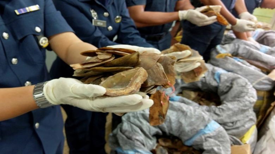 กัวลาลัมเปอร์ 13 มิ.ย.- เจ้าหน้าที่ศุลกากรมาเลเซียยึดเกล็ดตัวนิ่มลอบนำเข้ามาจากกานาได้เกือบ 300 กิโลกรัมที่ท่าอากาศยานนานาชาติกัวลาลัมเปอร์ มูลค่าราว 3.69 ล้านริงกิต (เกือบ 30 ล้านบาท)