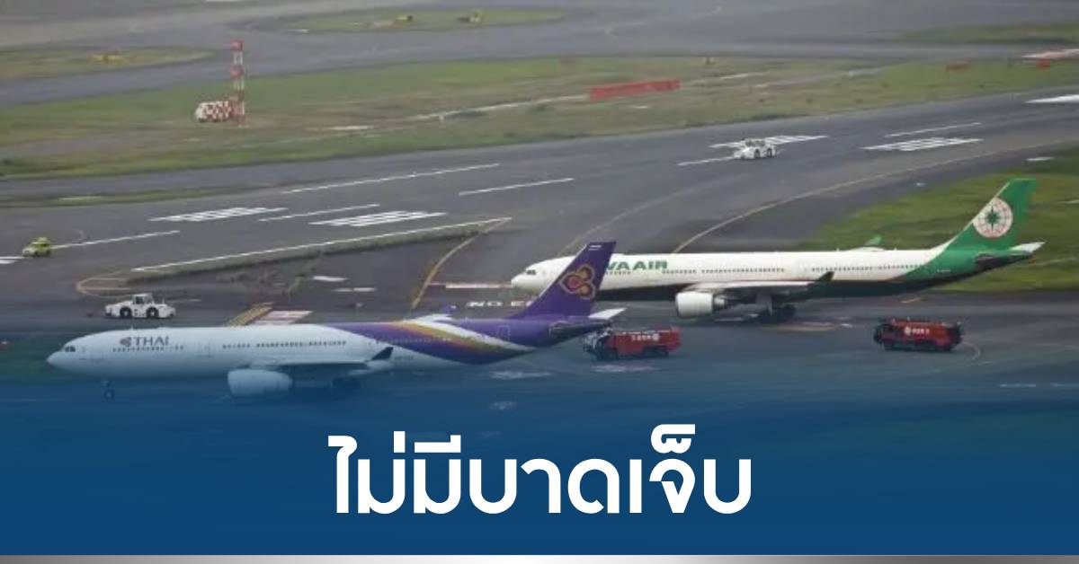 สำนักข่าวเกียวโด ของญี่ปุ่นรายงานวันนี้ว่า กระทรวงการขนส่งและสำนักงานดับเพลิงกรุงโตเกียวระบุว่า ไม่มีผู้ใดได้รับบาดเจ็บจากเหตุการณ์ครั้งนี้ที่เกิดขึ้นในเวลาประมาณ 11.00 น.ตามเวลาท้องถิ่น โดยเครื่องบิน 2 ลำที่ประสบเหตุเป็นเครื่องบินของสายการบินไทยและอีวีเอ ของไต้หวัน