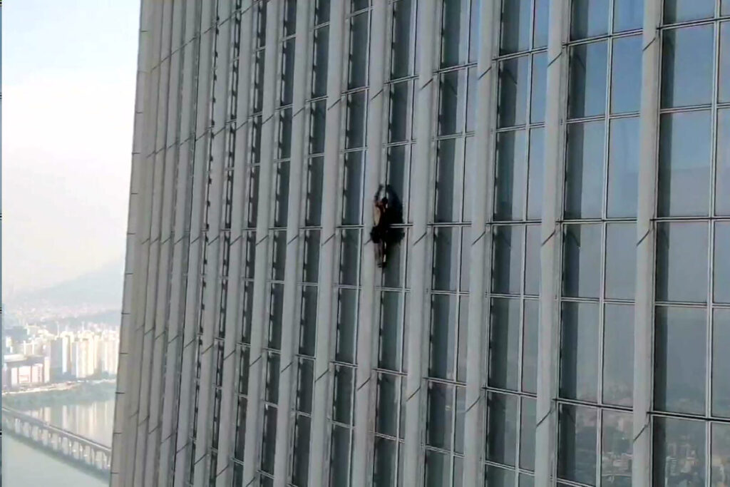 ชายคนนี้กำลังพยายามปืนอาคารล็อตเต้ เวิลด์ ทาเวอร์ ที่มีความสูง 123 ชั้น ที่อยู่ทางใต้ของกรุงโซลเมื่อตอนเช้าตรู่วันนี้ ก่อนที่เจ้าหน้าที่ของอาคารจะพบเห็นทำให้เขาต้องหยุดความพยายามของเขาในขณะที่ปืนไปถึงชั้นที่ 73 เจ้าหน้าที่ตำรวจกล่าวว่า พนักงานของล็อตเต้ต้องใช้กระเช้าลอยฟ้าเพื่อพยายามโน้มน้าวให้เขาหยุดปืนอาคารเมื่อตอนที่เขาขึ้นไปถึงชั้นที่ 70 แล้วและในที่สุดเขาก็ยอมล้มเลิกความพยายามและเจ้าหน้าที่ตำรวจได้เข้าจับกุมเขาในความผิดฐานขัดขวางการดำเนินธุรกิจ ขณะนี้เขากำลังถูกสอบปากคำที่สถานีตำรวจในเขตซงปา ในกรุงโซล อาคารล็อตเต้ เวิลด์ ทาเวอร์ มีความสูง 555 เมตร ซึ่งสูงที่สุดเป็นอันดับ 5 ของโลก เมื่อปี 2018 อแลง โรแบร์ หรือ ที่รู้จักกันในฉายา “สไปเดอร์แมนฝรั่งเศส” เคยถูกจำคุกหลังจากพยายามปืนตึกนี้ ตอนนั้นเขาปืนไปได้สูงถึงชั้นที่ 75