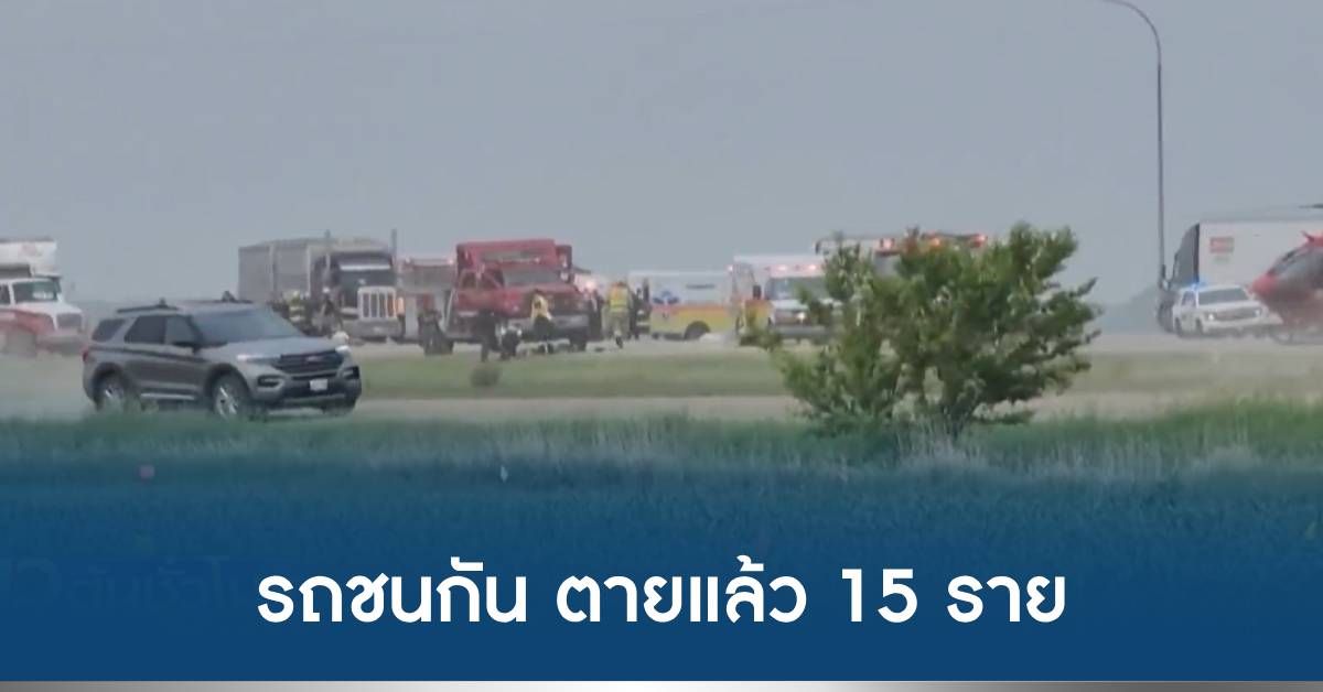 แคนาดา 16 มิ.ย.-รถตู้คอนเทนเนอร์ ชนกับรถมินิบัส ไฟลุกท่วม ในรัฐแมนิโทบา ทางตอนกลางของแคนาดา เสียชีวิตอย่างน้อย 15 คน บาดเจ็บ 10 คน