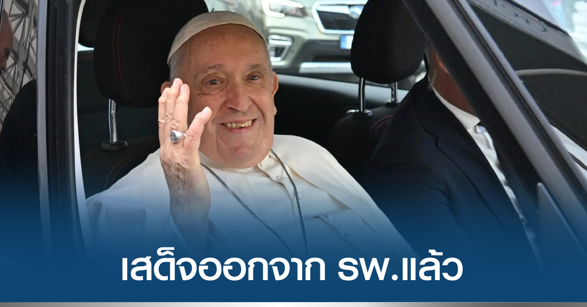 โรม 16 มิ.ย. – สมเด็จพระสันตะปาปาฟรานซิส ประมุขแห่งคริสตจักรโรมันคาทอลิก เสด็จออกจากโรงพยาบาลในกรุงโรมของอิตาลีแล้วในวันนี้ หลังจากทรงเข้ารับการผ่าตัดเพื่อรักษาอาการไส้เลื่อน และมุ่งหน้าเสด็จกลับสำนักวาติกัน