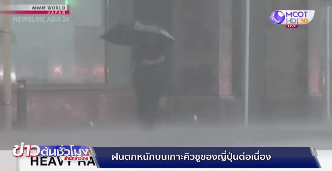 สำนักงานอุตุนิยมวิทยาญี่ปุ่น แจ้งเตือนประชาชนบนเกาะคิวชู ให้เฝ้าระวังเหตุดินถล่ม น้ำท่วม และน้ำในแม่น้ำเอ่อล้นตลิ่ง หลังมีฝนตกหนักต่อเนื่อง รวมทั้งขอให้ตรวจสอบข้อมูลการอพยพล่าสุดกับทางการ เพื่อความปลอดภัย ล่าสุดมีการแจ้งเตือนให้อพยพแล้วในหลายจังหวัด