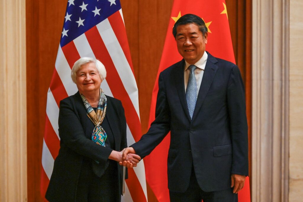 นางเยลเลน กำลังอยู่ในระหว่างการเยือนจีนเป็นเวลา 4 วัน ในช่วงเวลาเดียวกับที่สหรัฐพยายามหาทางลดความตึงเครียดในด้านความสัมพันธ์ระหว่างสองประเทศ และในวันนี้ เธอได้เข้าพบหารือกับนายเหอ หลี่เฟิง รองนายกรัฐมนตรีจีน ที่บ้านพักรับรองของรัฐบาลจีนเตียวหยูไถ่ ซึ่งเธอได้แจ้งกับนายเหอ ว่า เมื่อปีที่แล้วการค้าทวิภาคีของสหรัฐและจีนสูงเป็นประวัติการณ์ ซึ่งเป็นการพิสูจน์ถึงความสัมพันธ์ใกล้ชิดระหว่างกัน เธอยังกล่าวด้วยว่า ขณะนี้ยังมีพื้นที่ว่างอีกมากที่บริษัทของทั้งสองฝ่ายจะเกี่ยวข้องกันในด้านการค้าและการลงทุน และหากมีข้อกังวลในแนวทางปฏิบัติทางเศรษฐกิจที่เฉพาะเจาะจง ทั้งสองฝ่ายก็ควรจะสื่อสารกันโดยตรงเพื่อมิให้เกิดปัญหา