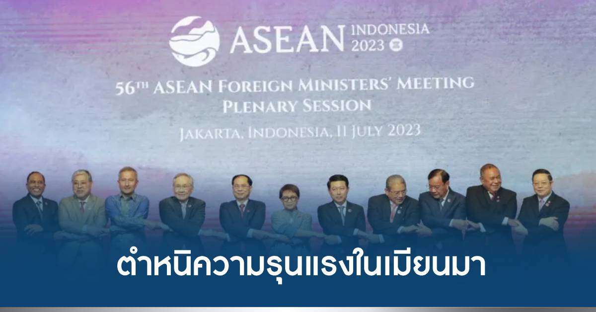แถลงการณ์ของรัฐมนตรีต่างประเทศอาเซียนกล่าวว่า อาเซียนขอยืนยันจุดยืนร่วมกันที่ว่า แผนสันติภาพ 5 ข้อที่เป็นฉันทามติยังคงเป็นหลักการในการแก้ไขวิกฤติการณ์การเมืองในเมียนมา อาเซียนขอตำหนิการใช้ความรุนแรง ซึ่งรวมถึงการโจมตีทางอากาศ การใช้ปืนใหญ่และการทำลายสิ่งอำนวยความสะดวกสาธารณะและเรียกร้องให้ทุกฝ่ายที่เกี่ยวข้องดำเนินมาตรการที่เป็นรูปธรรมในการยุติการใข้ความรุนแรงแบบไม่เลือกหน้าและประณามการการขยายการใช้ความรุนแรงใด ๆ ที่จะเกิดขึ้น นอกจากนั้นยังขอให้ทุกฝ่ายที่อยู่ในความขัดแย้งในเมียนมา สร้างสภาพแวดล้อมที่เอื้อต่อการให้ความช่วยเหลือทางมนุษยธรรมและเปิดการเจรจาที่ทุกฝ่ายมีส่วนเกี่ยวข้อง