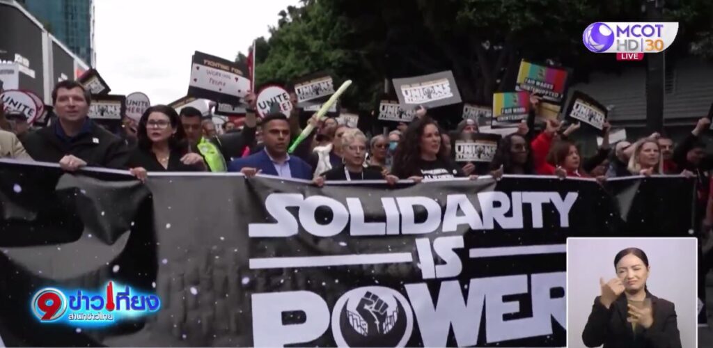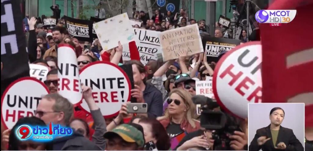 สหรัฐ 14 ก.ค. – วงการฮอลลีวูดสะเทือน เหล่าดารานักแสดงประกาศนัดหยุดงานครั้งใหญ่เป็นครั้งแรกในรอบกว่า 60 ปี ด้วยเหตุผลว่าค่าตอบแทนไม่เป็นธรรม เสี่ยงเป็นปัญหาใหญ่กระทบเศรษฐกิจ