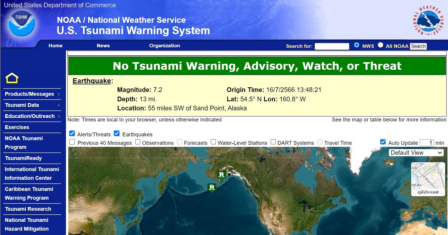 วอชิงตัน 16 ก.ค.- สหรัฐยกเลิกการเตือนภัยสึนามิหลังจากเกิดแผ่นดินไหวใหญ่ที่รัฐอะแลสกาแล้ว