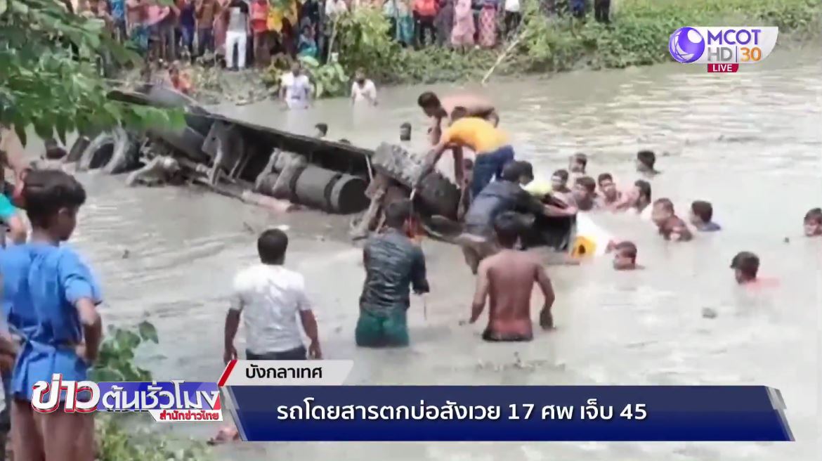 บังกลาเทศ 23 ก.ค. – อุบัติเหตุรถโดยสารลื่นไถลตกบ่อข้างถนนในบังกลาเทศ มีผู้เสียชีวิตกว่า 20 ราย และบาดเจ็บกว่า 40 คน