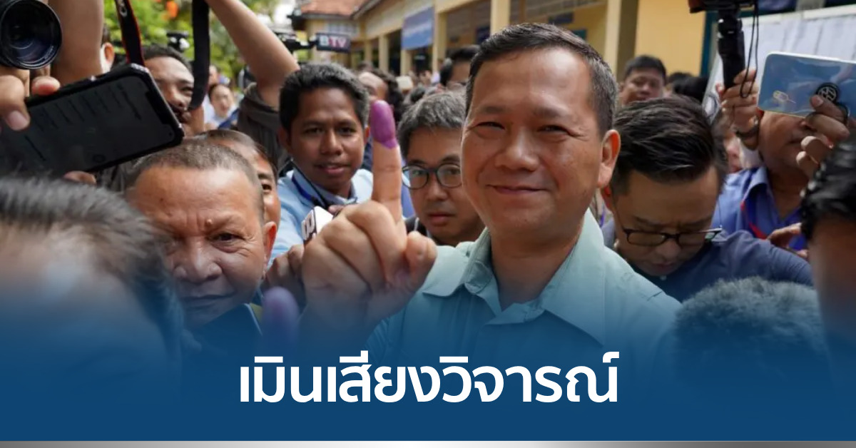 พนมเปญ 24 ก.ค. – ฮุน มาเนต นายพล 4 ดาว บุตรชายและทายาททางการเมืองของนายกรัฐมนตรีฮุน เซน ของกัมพูชา กล่าวยืนยันวันนี้ในเรื่องความถูกต้องชอบธรรมของการเลือกตั้งทั่วไปที่มีขึ้นเมื่อวานนี้ที่พรรคของเขาชนะการเลือกตั้ง เมินเสียงวิพากษ์วิจารณ์จากต่างประเทศที่ว่า การเลือกตั้งครั้งนี้ไม่ดำเนินการอย่างเสรีและไม่เป็นธรรม