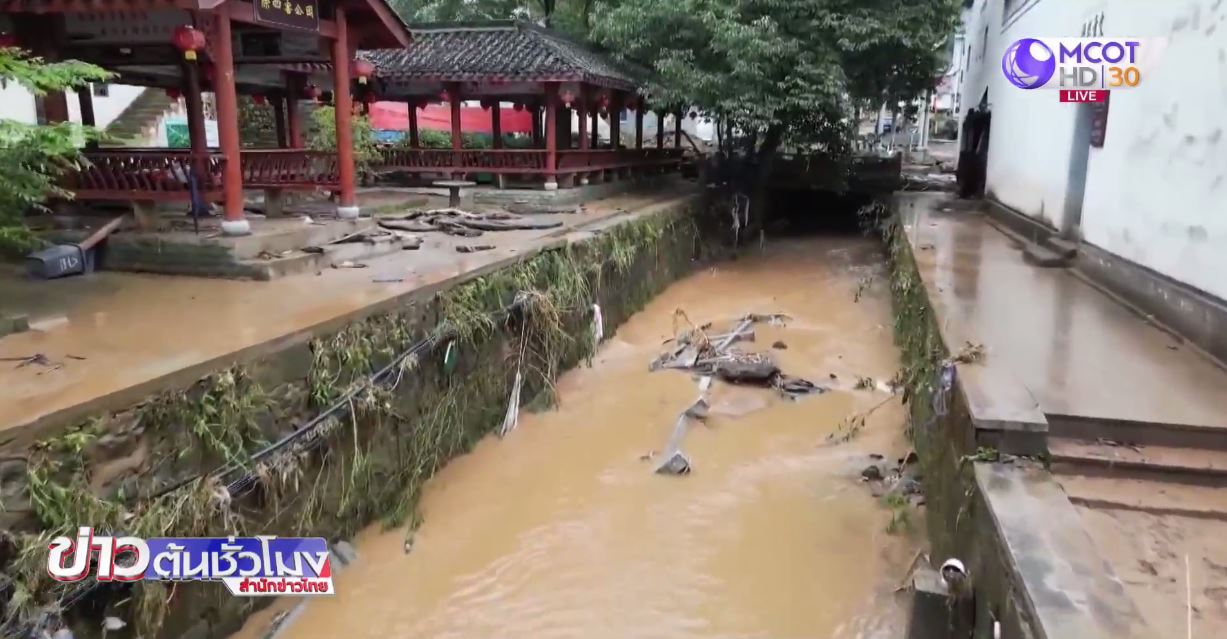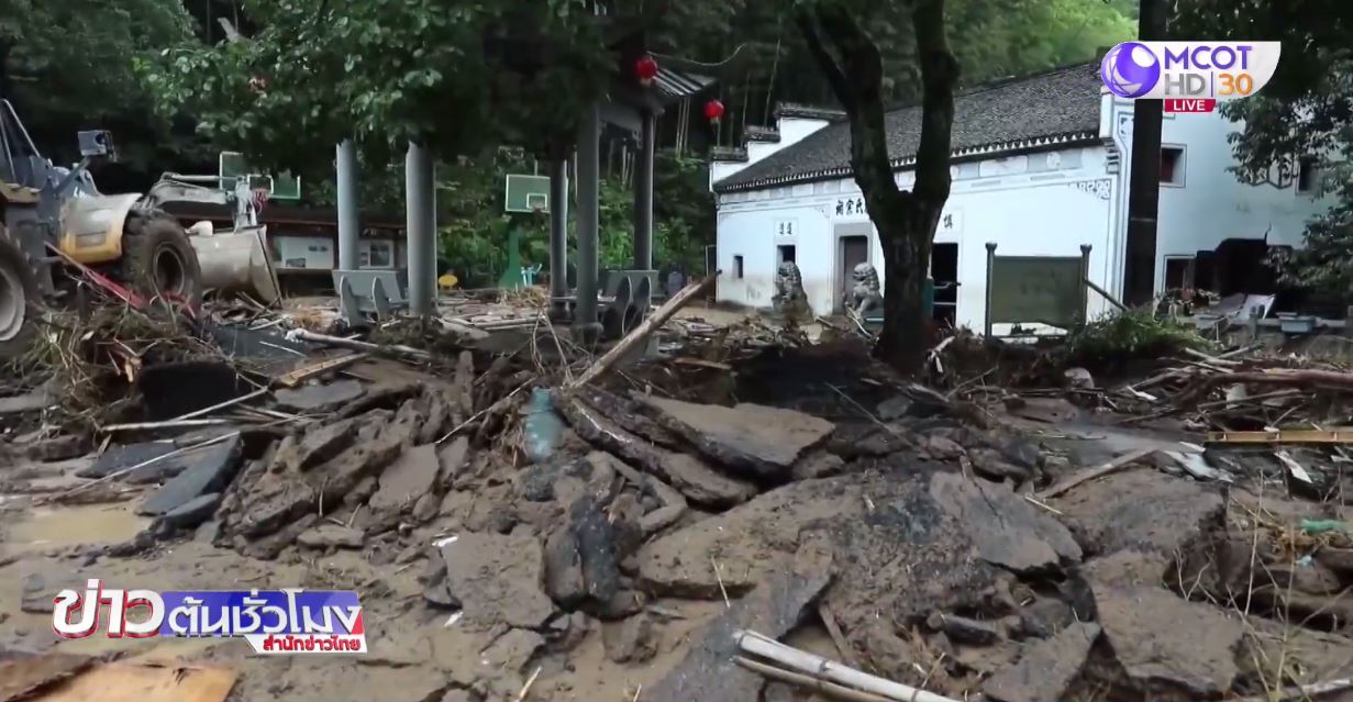 จีน 24 ก.ค. – น้ำท่วมฉับพลันในพื้นที่ทางตะวันออกของเมืองหางโจว มณฑลเจ้อเจียงของจีน หลังฝนตกหนัก มีผู้เสียชีวิตอย่างน้อย 5 ราย สูญหายอีก 3 ราย