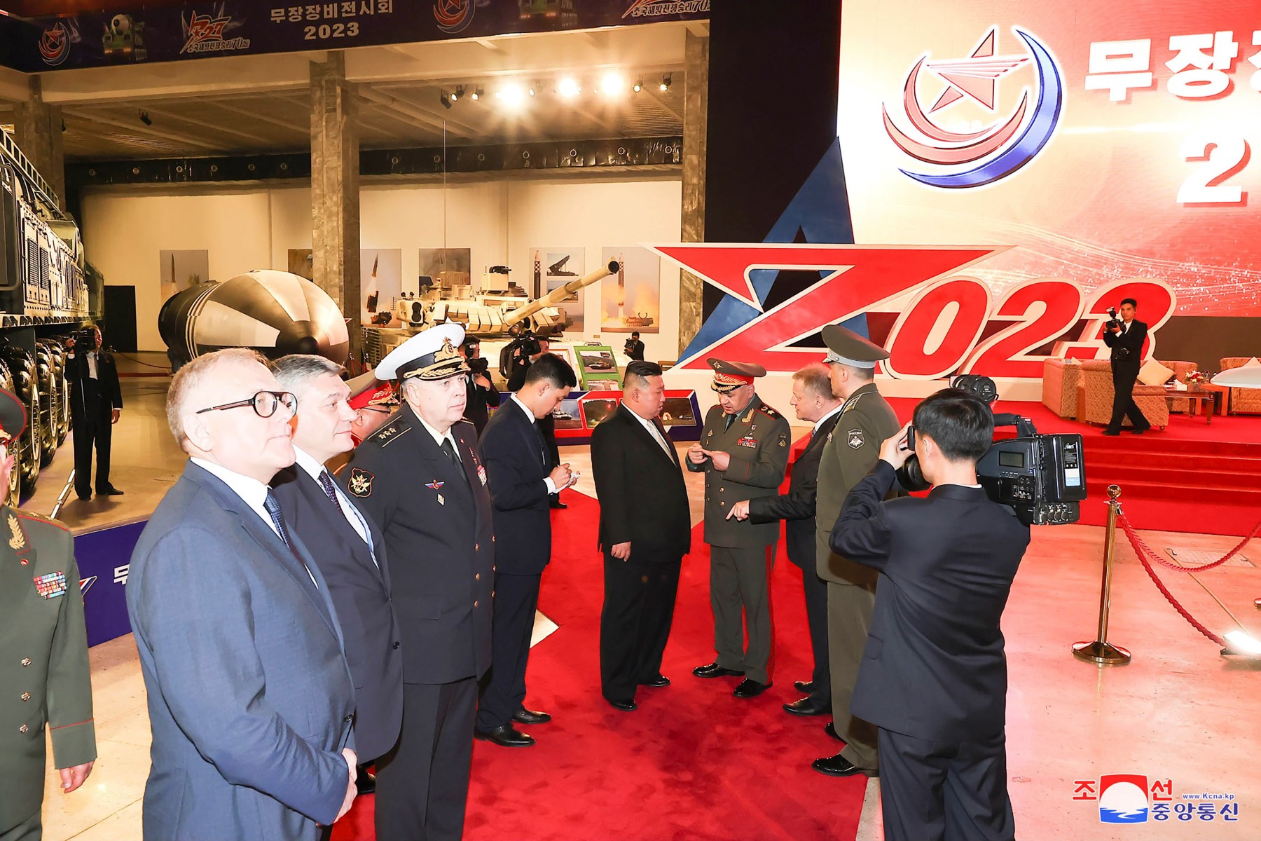 สำนักข่าวกลางเกาหลีหรือเคซีเอ็นเอ (KCNA) ของทางการเกาหลีเหนือ รายงานว่า นายคิมได้พานายชอยกู เยี่ยมชมนิทรรศการอาวุธและอุปกรณ์ 2023 โดยอธิบายเรื่องอาวุธที่เกาหลีเหนือผลิตและพัฒนาตามแผนการป้องกันประเทศ และแสดงความเชื่อมั่นซ้ำ ๆ ว่ากองทัพและประชาชนชาวรัสเซียจะประสบความสำเร็จอย่างยิ่งใหญ่ พร้อมกับเผยแพร่ภาพฮวาซอง-17 (Hwasong-17) ที่เป็นไอซีบีเอ็มใหญ่ที่สุดของเกาหลีเหนือ และฮวาซอง-18 (Hwasong-18) ที่เป็นไอซีบีเอ็มแบบเชื้อเพลิงแข็ง
