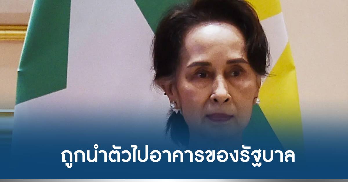 นางซูจีถูกพบเห็นเพียงครั้งเดียวนับตั้งแต่เธอถูกจับกุมเมื่อวันที่ 1 กุมภาพันธ์ 2021 เมื่อรัฐบาลพลเรือนของเธอถูกยึดอำนาจ ซึ่งเป็นภาพถ่ายที่รัฐบาลเมียนมานำออกเผยแพร่ เป็นภาพที่เธออยู่ในศาลในระหว่างเข้ารับการพิจารณาคดี.-สำนักข่าวไทย