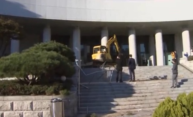 โซล 1 พ.ย. – ตำรวจเกาหลีใต้ควบคุมตัวชายคนหนึ่งในวันนี้ ขณะพยายามนำเครื่องจักรขนาดใหญ่บุกเข้ามาทางประตูใกล้สำนักงานอัยการซึ่งสอบสวนหญิงคนสนิทประธานาธิบดีซึ่งเป็นต้นเหตุของวิกฤตการเมือง หลังจากที่ก่อนนี้หญิงคนดังกล่าวบอกว่าสมควรตาย และชายที่ถูกควบคุมตัววันนี้บอกว่ามาเพื่อช่วยเธอให้ตายสมใจ