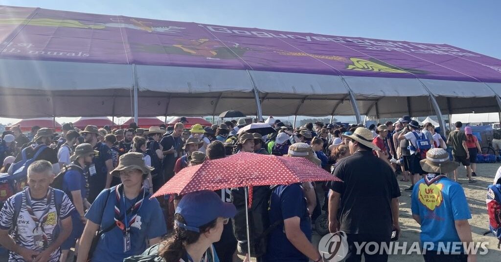 งานชุมนุมลูกเสือโลกครั้งนี้จัดขึ้นที่จังหวัดช็อลลาเหนือ และมีผู้เข้าร่วมงานจากทั่วโลกประมาณ 43,000 คน แต่คลื่นความร้อนรุนแรงทำให้ลูกเสือหลายร้อยคนมีอาการป่วย ทำให้รัฐบาลเกาหลีใต้ต้องส่งแพทย์ทหารเข้ามาช่วยดูแล และประกาศจะดำเนินการทุกอย่างสุดความสามารถให้กิจกรรมของงานชุมนุมลูกเสือโลกสามารถดำเนินต่อไปได้ อย่างไรก็ตาม แม้รัฐบาลสัญญาจะจัดหารถโดยสารปรับอากาศและรถบรรทุกห้องเย็นเพื่อช่วยคลายความร้อน แต่สำนักข่าวยอนฮัพรายงานว่า คณะลูกเสือของสหรัฐกล่าววันนี้ว่า พวกเขาจะย้ายออกจากค่ายที่พัก หลังจากที่คณะลูกเสือจากอังกฤษประกาศย้ายออกไปตั้งแต่เมื่อวาน โดยอ้างความกังวลเรื่องสภาพอากาศร้อนและสภาพของสถานที่จัดงาน เจ้าหน้าที่กล่าวว่า คณะลูกเสือสหรัฐจะไปอยู่ที่แคมป์ ฮัมฟรีย์ส ซึ่งเป็นค่ายทหารสหรัฐที่อยู่ในเมืองพยองแต็ก