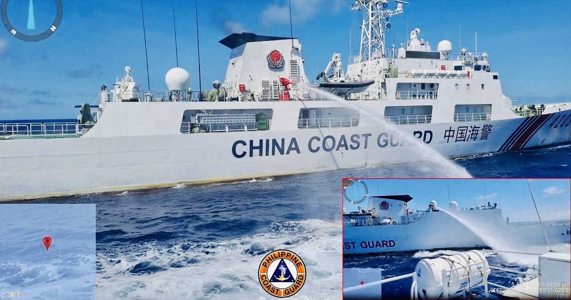 หน่วยยามฝั่งฟิลิปปินส์แถลงว่า ขอประณามอย่างรุนแรงต่อการที่หน่วยยามฝั่งจีนมีการกระทำที่เป็นอันตรายและฉีดน้ำแรงดันสูงอย่างผิดกฎหมายกับเรือของหน่วยยามฝั่งฟิลิปปินส์ เหตุการณ์นี้เกิดขึ้นเมื่อวันเสาร์ในขณะที่หน่วยยามฝั่งฟิลิปปินส์กำลังให้การคุ้มกันแก่กองเรือที่บรรทุกเสบียงให้แก่กำลังพลของฟิลิปปินส์ ซึ่งประจำการบริเวณสันดอนเซ็กคันด์ โทมัส โชล (Second Thomas Shoal) ในหมู่เกาะสแปรตลีย์ที่อยู่ในทะเลจีนใต้