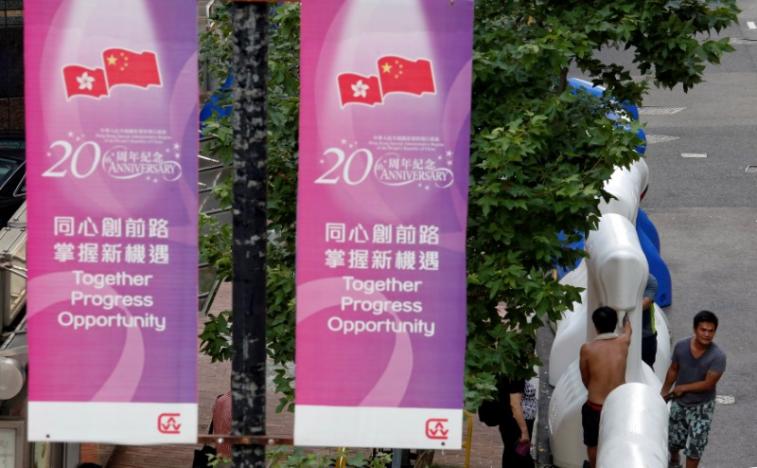กลุ่มนักเคลื่อนไหวเรียกร้องประชาธิปไตย ซึ่งรวมถึงนายโจชัว หว่อง นักศึกษาที่เป็นนักเคลื่อนไหวทางการเมืองคนสำคัญ ได้ร่วมกันนำธงไปคลุมรูปปั้นที่เป็นสัญญลักษณ์แสดงถึงการที่ฮ่องกงกลับไปสู่การปกครองของจีนอีกครั้งเมื่อตอนเช้าตรู่ในวันนี้เป็นเป็นการแสดงถึงการไม่ยอมรับการปกครองของจีนในฮ่องกง ในขณะเดียวกันกลุ่มนักเคลื่อนไหวอีกหลายสิบคน เดินขบวนไปยังสำนักงานผู้แทนของจีนในฮ่องกงในช่วงบ่าย ซึ่งเป็นการชุมนุมต่อต้านการคุมขังนักกฎหมายด้านสิทธิมนุษยชนหลายร้อยคนที่ถูกจับกุมในจีนแผ่นดินใหญ่ ในขณะที่มีกลุ่มผู้ประท้วงอีกลุ่มไปรวมตัวกันในใจกลางเมืองในการร้องเพลงเพื่อประชาธิปไตย ประธานาธิบดีสี มีกำหนดจะเดินทางไปยังฮ่องกงในวันพฤหัสบดีนี้ เพื่อเยือนเป็นเวลา 3 วัน และเข้าร่วมงานฉลอง โดยจะเป็นการเยือนฮ่องกครั้งแรกนับตั้งแต่เขาเข้ารับตำแหน่งผู้นำประเทศเมื่อปี 2556.-สำนักข่าวไทย