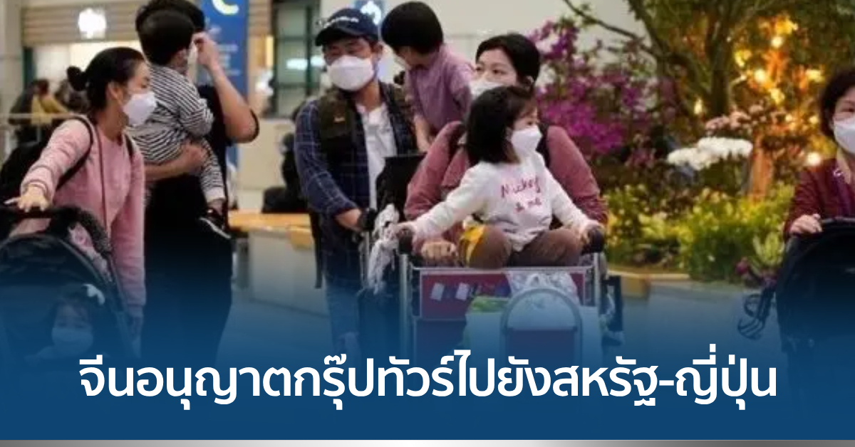 ปักกิ่ง 10 ส.ค. – รัฐบาลจีนประกาศวันนี้ยกเลิกคำสั่งในช่วงที่มีการระบาดของโควิด-19 ที่ห้ามการเดินทางท่องเที่ยวแบบเป็นกลุ่มไปยังหลายประเทศ รวมถึง สหรัฐและญี่ปุ่น ซึ่งเป็นความเคลื่อนไหวที่จะเปิดทางให้นักท่องเที่ยวจากจีนจำนวนมากเดินทางกลับไปเยือนสถานที่ท่องเที่ยวต่างๆ ทั่วโลก