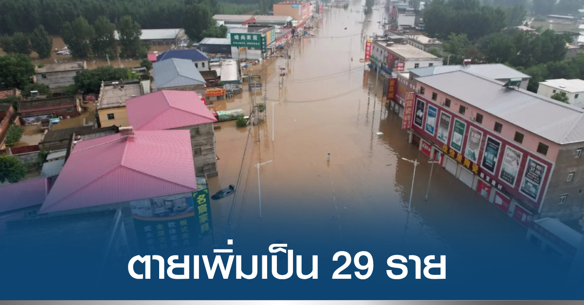 ปักกิ่ง 11 ส.ค. – โทรทัศน์ของทางการจีนรายงานวันนี้ว่า ยอดผู้เสียชีวิตจากเหตุน้ำท่วมในมณฑลเหอเป่ยของจีนเพิ่มเป็น 29 รายแล้ว หลังจากที่เกิดฝนตกหนักที่มีปริมาณมากเป็นประวัติการณ์ในพื้นที่ในช่วงไม่กี่สัปดาห์ที่ผ่านมา
