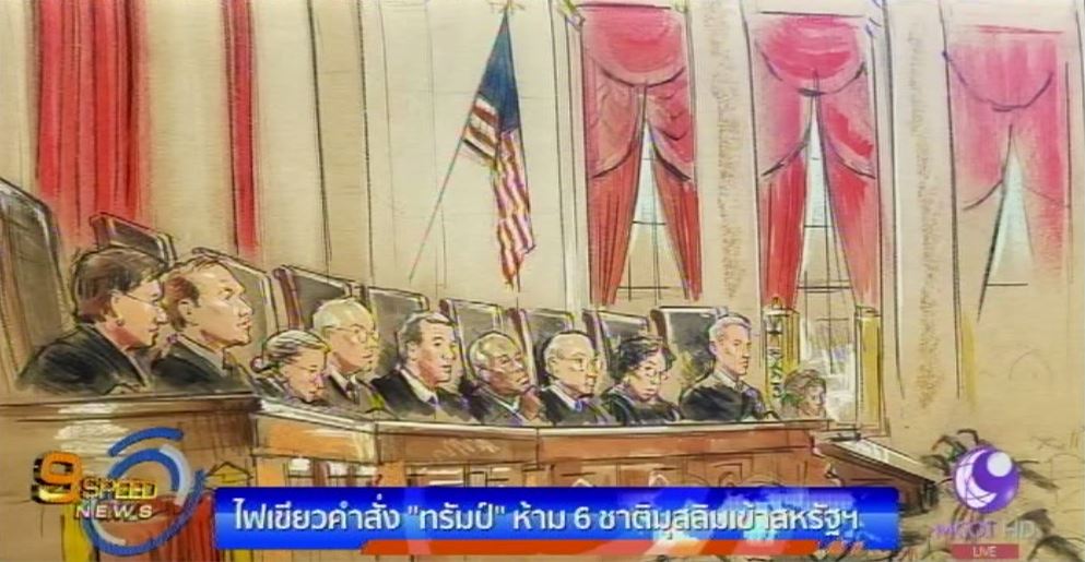 สหรัฐ 27 มิ.ย.-ศาลสูงสหรัฐอนุญาตให้คำสั่งห้ามพลเรือนและผู้ลี้ภัยจาก 6 ชาติมุสลิมเดินทางเข้าสหรัฐของประธานาธิบดีโดนัลด์ ทรัมป์ มีผลบังคับใช้ได้บางส่วน ซึ่งนายทรัมป์ ระบุว่า เป็นชัยชนะด้านความมั่นคงของสหรัฐ อย่างไรก็ดี ศาลสูงจะพิจารณานโยบายของประธานาธิบดีทรัมป์อีกครั้งในเดือนตุลาคมนี้ ก่อนจะตัดสินใจว่าจะให้คำสั่งดังกล่าวมีผลบังคับใช้ หรือจะสั่งระงับเหมือนกับศาลชั้นต้น.-สำนักข่าวไทย