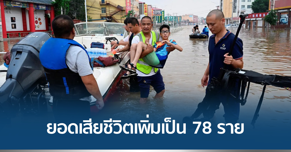 ปักกิ่ง 11 ส.ค. – ยอดผู้เสียชีวิตจากพายุฝนตกหนักที่สุดเป็นประวัติการณ์บริเวณภาคเหนือของจีน เพิ่มเป็น 78 รายแล้ว ขณะที่เจ้าหน้าที่เตือนว่าอาจจะเกิดน้ำท่วมเพิ่มเติม และพายุลูกใหม่กำลังเคลี่อนตัวเข้าใกล้ประเทศจีน