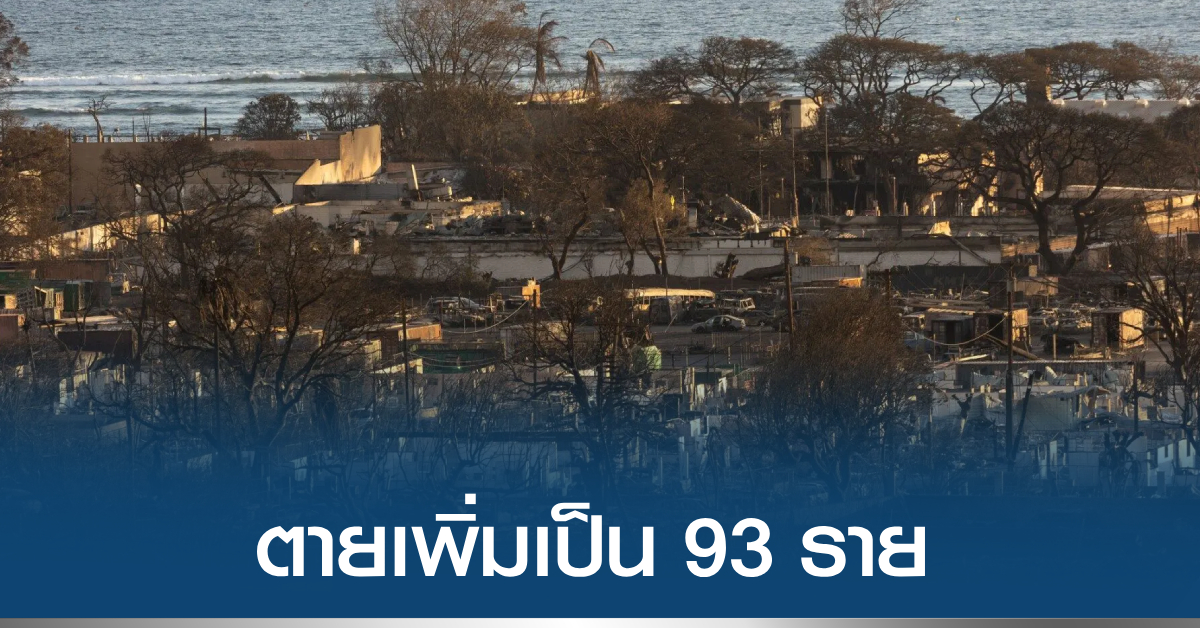 ลาไฮนา 13 ส.ค.- ไฟป่าที่เผาเมืองลาไฮนา ในรัฐฮาวายของสหรัฐ มีผู้เสียชีวิตเพิ่มขึ้นเป็น 93 คนแล้ว นับเป็นไฟป่าร้ายแรงที่สุดในสหรัฐในรอบกว่า 100 ปี