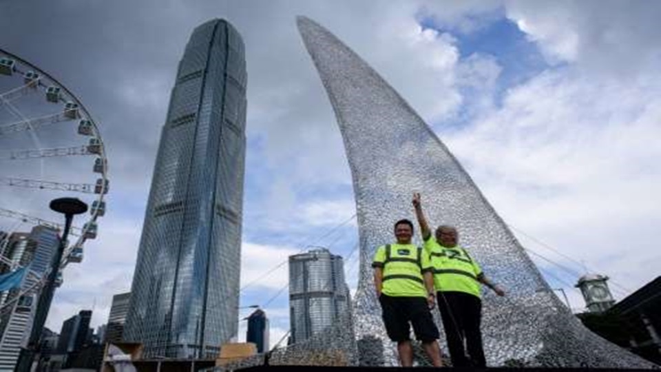 ฮ่องกง 27 มิ.ย. – เขตบริหารพิเศษฮ่องกงจัดนิทรรศการศิลปะ ตั้งประติมากรรมรูปครีบฉลามทำจากเหล็กขนาดสูงเท่าตึก รณรงค์ให้เลิกล่าและค้าครีบฉลาม