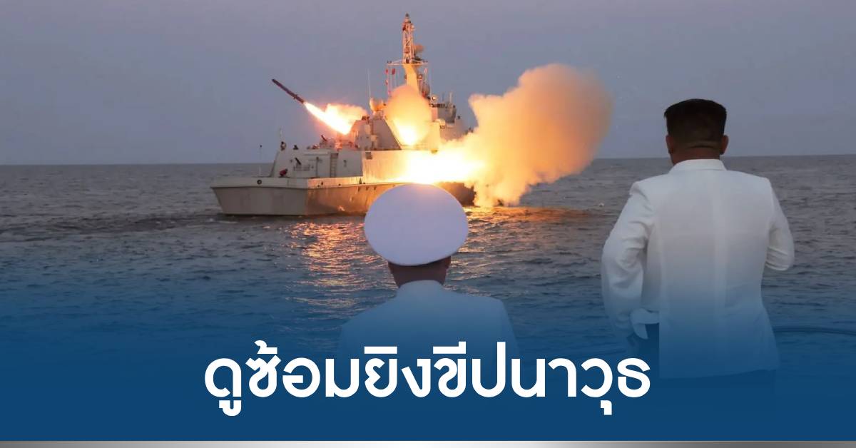 สำนักข่าวกลางเกาหลีหรือเคซีเอ็นเอ (KCNA) รายงานว่า นายคิมได้ไปตรวจเยี่ยมเรือลำหนึ่งของกองทัพเรือที่ประจำการอยู่ในทะเลตะวันออก ซึ่งเป็นชื่อที่เกาหลีเหนือใช้เรียกทะเลญี่ปุ่น และชมการซ้อมยิงขีปนาวุธร่อนเชิงยุทธศาสตร์ เป็นการซ้อมที่มีจุดประสงค์เพื่อตรวจสอบการทำหน้าที่สู้รบของเรือและการทำงานของระบบขีปนาวุธบนเรือ และเพื่อให้ทหารเรือมีทักษะในการปฏิบัติภารกิจโจมตีเมื่อเกิดสงครามจริง