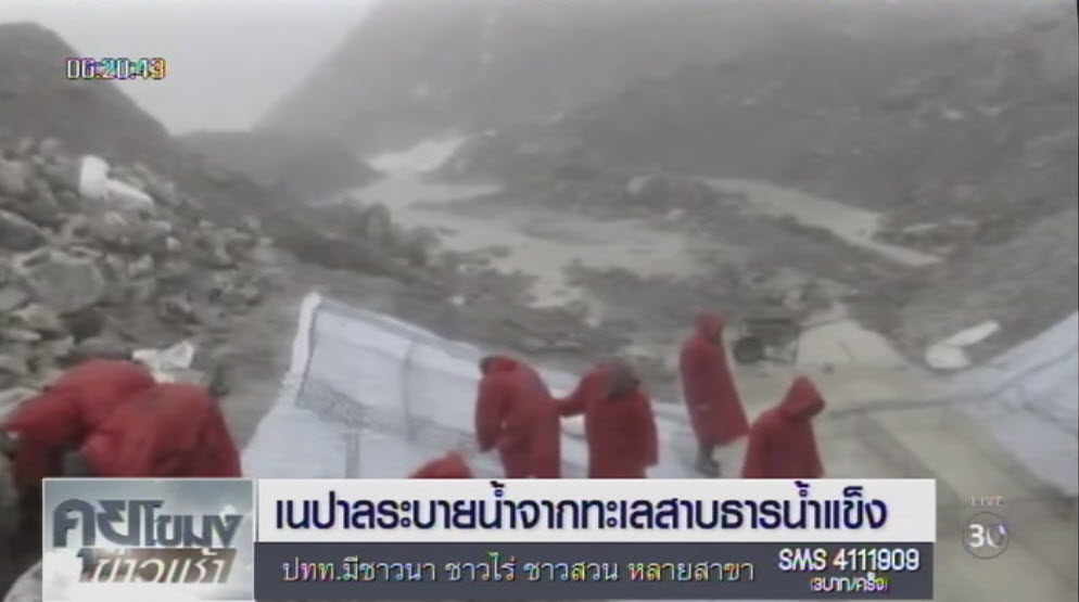 ผลกระทบจากการเปลี่ยนแปลงสภาพภูมิอากาศทำให้ธารน้ำแข็งหิมาลัยละลายอย่างรวดเร็ว จนเกิดเป็นทะเลสาบขนาดใหญ่ที่อาจล้นตลิ่งและไหลเข้าท่วมชุมชนในหุบเขา ผู้เชี่ยวชาญเผยว่า ภัยพิบัติจากธารน้ำแข็งละลายจะส่งผลกระทบอย่างรุนแรงต่อชีวิตผู้คนกว่า 50,000 คน ที่อาศัยอยู่ในบริเวณใกล้เคียงและประชาชนในเขตพื้นที่ทางตอนใต้ของเนปาล. – สำนักข่าวไทย