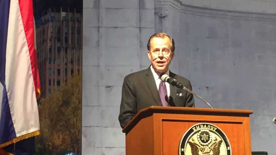 นายกลิน เดวีส์ เอกอัครราชทูตสหรัฐฯ ประจำประเทศไทย กล่าวว่า สหรัฐกับไทยมีความสัมพันธ์อันดีต่อกันมาหลายชั่วอายุคน และได้ร่วมมือกันหลายด้านมาโดยตลอด นับว่าเป็นความร่วมมือ ที่มีส่วนช่วยพัฒนาโลกให้น่าอยู่ขึ้น นอกจากนี้ ปีหน้ายังถือเป็นปีสำคัญแห่งความสัมพันธ์ไทยกับสหรัฐ เนื่องจากเป็นวาระสถาปนาความสัมพันธ์ทางการทูต ครบ 200 ปี จึงขอให้ทั้งไทยและสหรัฐมุ่งสานต่อความร่วมมือ และสายสัมพันธ์ที่กำลังย่างเข้าสู่ศตวรรษใหม่ เอกอัครราชทูตสหรัฐฯ ประจำประเทศไทย ยังแสดงความอาลัยต่อการเสด็จสวรรคตของพระบาทสมเด็จพระปรมินทรมหาภูมิพลอดุลยเดช ผู้ทรงเป็นเสมือนพระบิดาแห่งมิตรภาพระหว่างไทยกับสหรัฐด้วย