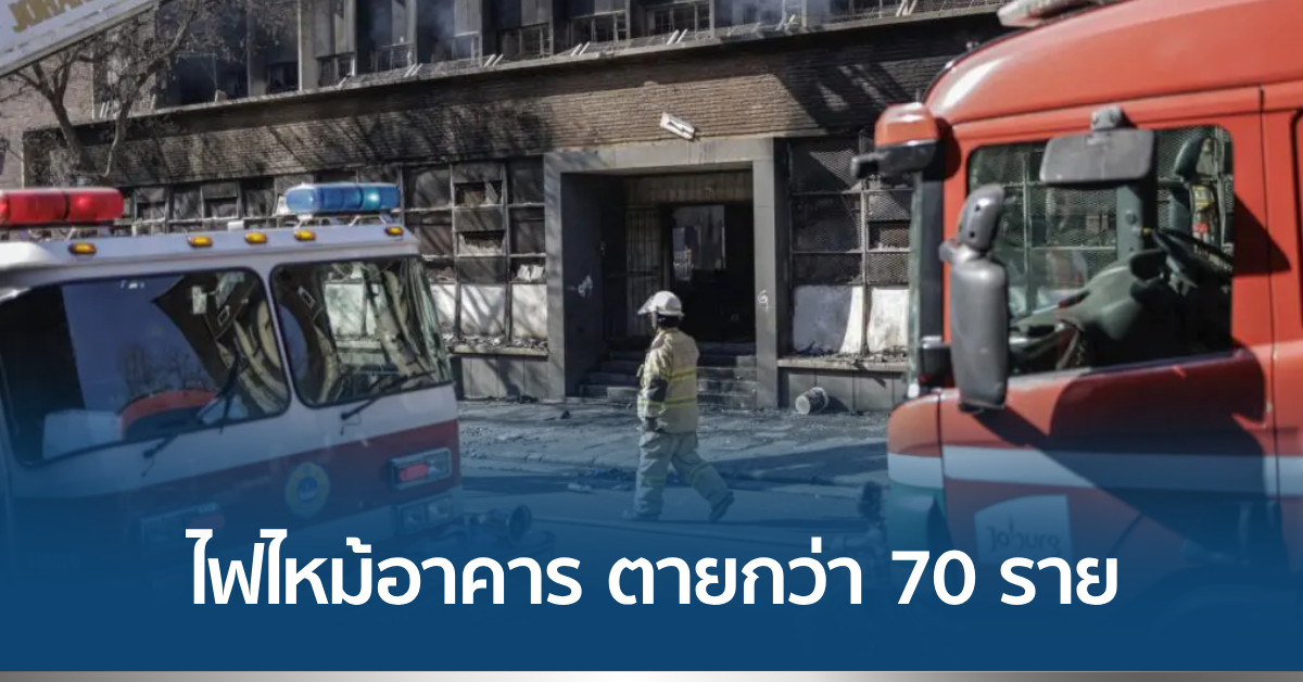 โจฮันเนสเบิร์ก 31 ส.ค. – เจ้าหน้าที่บริการฉุกเฉินของนครโจฮันเนสเบิร์กของแอฟริกาใต้ กล่าววันนี้ว่าเกิดเพลิงไหม้อาคารสูง 5 ชั้น ใจกลางนครโจฮันเนสเบิร์ก ทำให้มีผู้เสียชีวิตกว่า 70 ราย ซึ่งมีเด็กรวมอยู่ด้วย