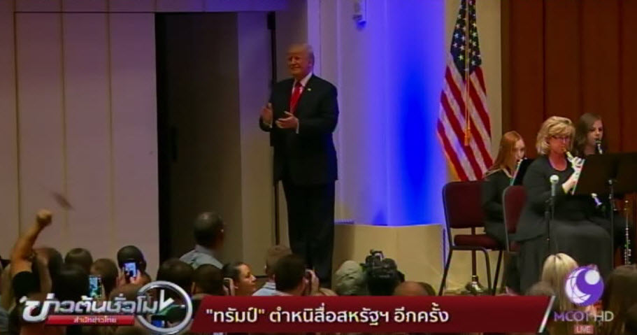 สหรัฐ 2 ก.ค. – ประธานาธิบดีโดนัลด์ ทรัมป์ ผู้นำสหรัฐกล่าวยกย่องทหารผ่านศึกที่ศูนย์เคเนดี เซ็นเตอร์ ในกรุงวอชิงตัน เนื่องในโอกาสวันชาติสหรัฐฯ 4 กรกฏาคม อย่างไรก็ตาม ในงานเดียวกันนายทรัมป์ก็อดไม่ได้ที่จะกล่าวตำหนิสื่อ โดยกล่าวว่า สื่อจอมปลอมกำลังพยายามที่จะทำให้ตนหยุดพูด แต่ตนจะไม่ยอมหยุดอย่างเด็ดขาด นอกจากนั้นยังกล่าวอีกว่า สื่อจอมปลอมพยายามขัดขวางตนสู่ทำเนียบขาว แต่เมื่อตนได้เป็นประธานาธิบดีแล้ว จะไม่ยินยอมอย่างเด็ดขาด นายทรัมป์ ใช้เวลาตลอดสุดสัปดาห์ที่เมืองเบดมินสเตอร์ รัฐนิวเจอร์ซีย์เดินทางมาร่วมงานที่กรุงวอชิงตันแล้วกลับเมืองเบดมินสเตอร์แทนที่จะกลับไปยังทำเนียบขาว. -สำนักข่าวไทย