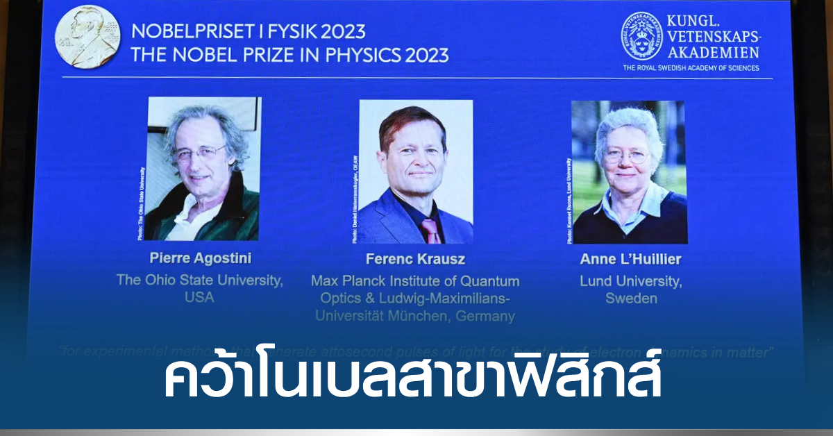 ราชบัณฑิตสภาฯ ประกาศว่า เจ้าของรางวัลโนเบลสาขาฟิสิกส์ทั้ง 3 คน เป็นที่ยอมรับเรื่องการทดลองที่ทำให้มนุษยชาติมีเครื่องมือใหม่ในการสำรวจโลกของอิเล็กตรอนที่อยู่ในอะตอมและโมเลกุล โดยได้แสดงให้เห็นวิธีการในการสร้างไฟกะพริบที่สั้นมากเพียง 1 อัตโตวินาที หรือ 1 ในล้านล้านล้านของวินาที ที่สามารถนำไปใช้วัดกระบวนการอันรวดเร็วที่อิเล็กตรอนเคลื่อนที่หรือเปลี่ยนพลังงาน.-สำนักข่าวไทย