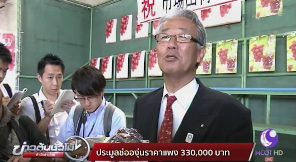 ญี่ปุ่น 7 ก.ค.-ญี่ปุ่นจัดงานประมูลองุ่นพันธุ์รูบี้ โรมัน ประจำปี โดยมีราคาสูงสุดถึง 330,000 บาท ซึ่งสูงเป็นประวัติการณ์
