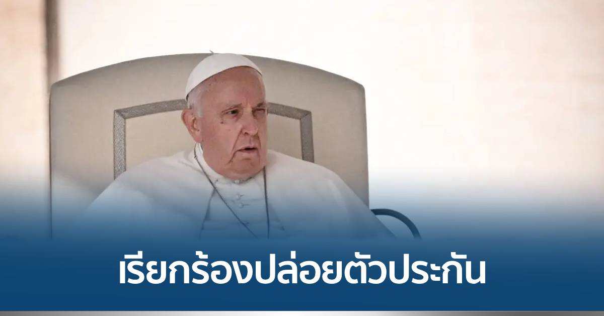สำนักวาติกัน 11 ต.ค.- สมเด็จพระสันตะปาปาฟรานซิส ประมุขคริสต์จักรนิกายโรมันคาทอลิกทรงเรียกร้องวันนี้ให้ปล่อยตัวประกันที่ถูกจับในสงครามฮามาส-อิสราเอล และทรงแสดงความเป็นห่วงเรื่องการปิดล้อมกาซา