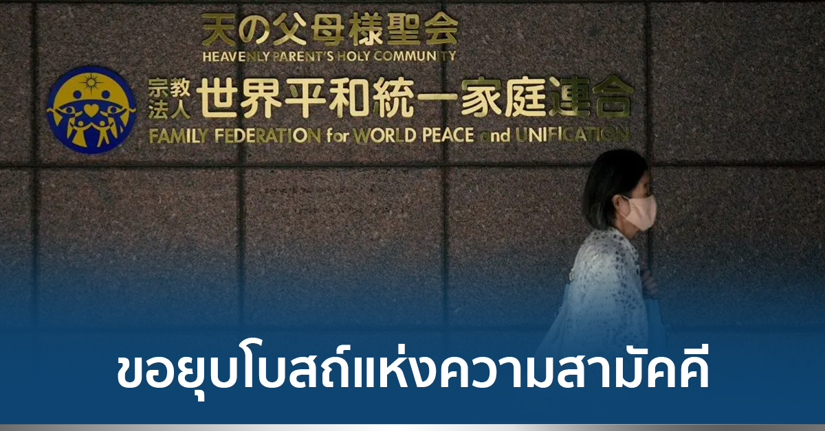 โตเกียว 13 ต.ค. – รัฐบาลญี่ปุ่นยื่นคำขอต่อศาลในวันนี้เพื่อให้ยุบโบสถ์แห่งความสามัคคี หรือ ยูนิฟิเคชั่น เชิร์ช (Unification Church) ที่เป็นลัทธิที่มีอิทธิพล ซึ่งตกเป็นเป้าการตรวจสอบอย่างละเอียดหลังการลอบสังหารอดีตนายกรัฐมนตรีชินโซ อาเบะ