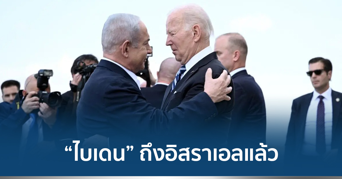 เทลอาวีฟ 18 ต.ค.- ประธานาธิบดีโจ ไบเดนของสหรัฐเดินทางถึงอิสราเอลแล้วในวันนี้ เพื่อแสดงความเป็นหนึ่งเดียวกับอิสราเอลที่ถูกกลุ่มฮามาสเปิดฉากโจมตี โดยมีนายกรัฐมนตรีเบนจามิน เนทันยาฮูของอิสราเอลมารับด้วยตนเอง