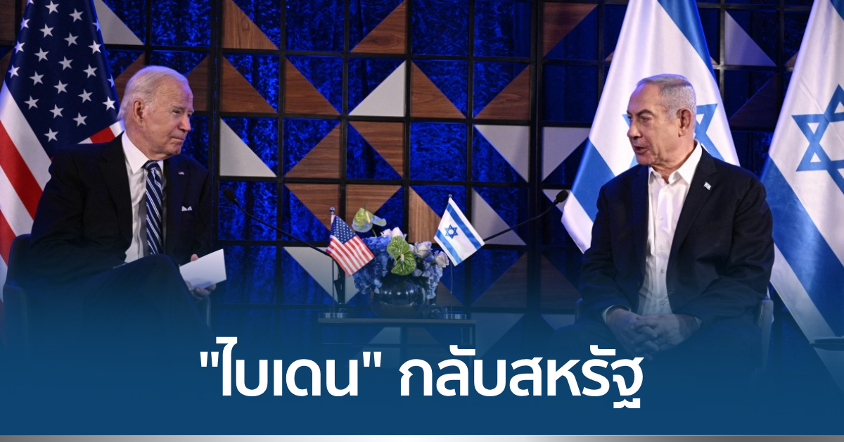 สหรัฐ 19 ต.ค. – ประธานาธิบดีโจ ไบเดน ผู้นำสหรัฐ เดินทางออกจากอิสราเอลแล้ว หลังเสร็จสิ้นการเยือนเพื่อให้กำลังใจอิสราเอล และหาทางผ่อนคลายความขัดแย้งอิสราเอล-ฮามาส หลังเหตุระเบิดโรงพยาบาลในฉนวนกาซา ที่ทั้งสองฝ่ายโทษกันไปมา