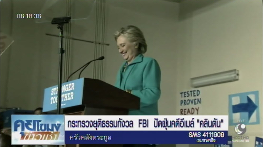 ส่วนนายโดนัลด์ ทรัมป์ ตัวแทนพรรครีพับลิกันชิงตำแหน่งประธานาธิบดีสหรัฐ เผยที่เมืองลาสเวกัส รัฐเนวาดา กล่าวหาว่ากระทรวงยุติธรรมพยายามทำทุกอย่างเพื่อปกป้องตัวแทนพรรคเดโมแครต แสดงให้เห็นว่าระบบถูกล็อกไว้แล้วว่าต้องปกป้องการกระทำผิดของนางคลิน ตัน อย่างไรก็ดี เอฟบีไอยังไม่ชี้แจง ว่ากรอบระยะเวลาการสืบสวนจะมีขึ้นในช่วงใด แต่คาดว่าผลการสอบสวนน่าจะออกมาหลังการเลือกตั้งประธานาธิบดีผ่านพ้นไปแล้ว. – สำนักข่าวไทย